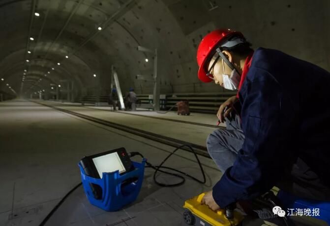 隧道内车辆轨道同样由中国铁建设计,据介绍,苏通GIL综合管廊轨道精度要求高,采用无缝线路、整体道床结构,精度达到了“高铁”级,采用高铁施工标准的CPIII测量等级。