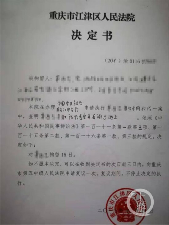 龚某藐视法庭尊严、以暴力威胁等方式妨碍司法人员执行公务,江津区法院依法做出拘留决定,对其司法拘留十五日。