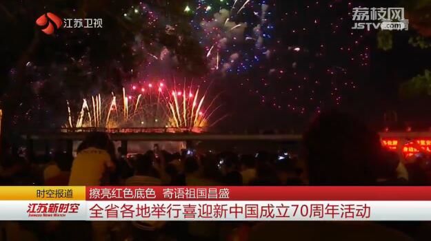 小长假期间,全省各地举行了形式多样的喜迎新中国成立70周年活动。泰州泰兴开展"我与国旗合个影,我为祖国送祝福"主题宣教活动,市民们纷纷带着孩子,与国旗同框,用最简单、最直观的方式向国庆献礼。在无锡江阴华西村,游客们切身感受现代新农村的可喜变化。在无锡鼋头渚,《礼赞祖国》烟花大会震撼上演,由礼花拼成的"祖国万岁"等字样在空中绽放,吸引人们纷纷用手机记录下这绚烂的一刻。