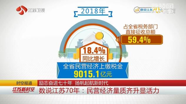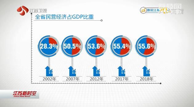 新中国成立以来,民营经济对全省经济增长的贡献不断增强。2002年,全省民营经济占GDP的比重达28.3%。2007年,民营经济总量跃上新台阶,突破万亿元大关,占GDP的比重超过一半,成为江苏经济的新支柱。随后,民营经济占GDP的比重稳步提高。2018年,民营经济增加值首次突破5万亿,占GDP比重达55.6%。
