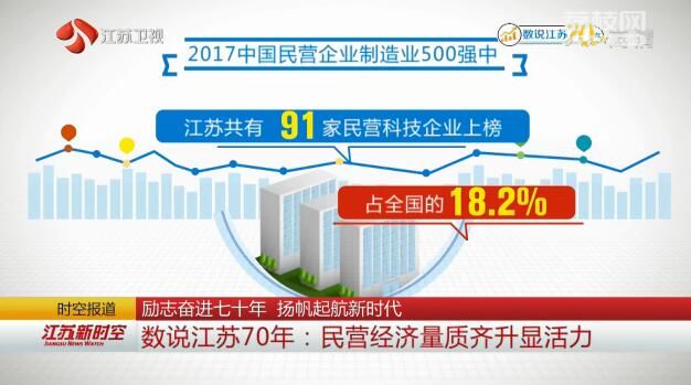 根据全国工商联发布的消息,2017中国民营企业制造业500强中,江苏共有91家民营科技企业上榜,占全国的18.2%。2018中国民营企业500强中,江苏民企表现出色,有86家企业上榜,位居全国第二。其中,营收超千亿的企业有10家,营收超500亿的企业达到22家。