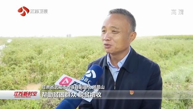 江苏台记者吴迎旋:“我现在所在的位置是甘肃省武威市古浪县万亩枸杞园,这些红彤彤的水果枸杞,从今年的6月份就已经迎来了丰收,现在已经是最后的采摘季了。这些枸杞营养丰富,口感甜脆,也是当地村民们脱贫致富的红宝石。”