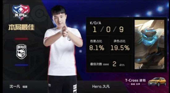 在本场比赛中,HERO久竞新人辅助沈一凡使用张飞、盾山打出了不俗效果。在第一局HERO久竞落后的情况下,他的张飞果断开团,配合队友的控制链成功反打,帮助队伍逆风翻盘。而第二局的盾山也频频出现亮眼操作,闪现开人打出几波零换三,帮助队伍再下一城。
