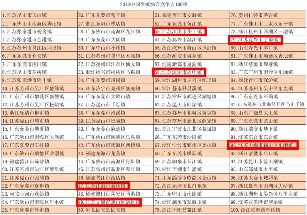 江苏省34个镇进入中国乡镇综合竞争力100强其中,无锡有6个镇上榜实力是非常666!!!