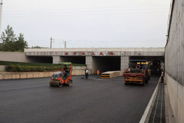 节前,南京路立交桥施工现场聚集了多台大型工程车,对西半幅机动车道进行最后一层沥青的铺设,随着摊铺机和压路机的移动,一条严丝合缝的新路呼之欲出。