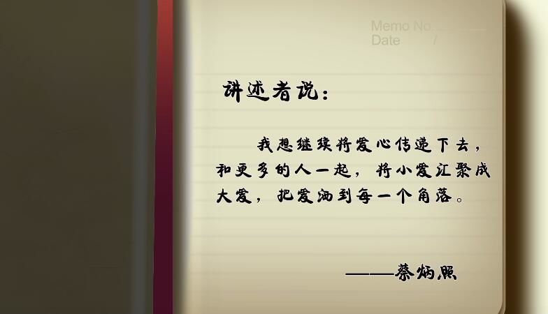 2001年他独自创办了“蔡炳照大爱”基金会,向社会上的孤儿、残疾学生以及其他有困难的人进行资助。直到现在,“蔡炳照大爱”基金会每年仍有超过10万元的社会捐助。而这样的“大爱”也源自蔡炳照父母的言传身教。