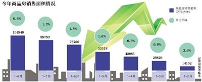 此外,商品房销售面积数据也有所降温。数据显示,今年1-8月份,商品房销售面积为101849万平方米,同比下降0.6%。新京报记者注意到,这已经是今年以来商品房销售面积连续七个月同比负增长。