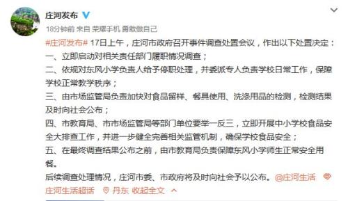 17日上午,庄河市政府召开事件调查处置会议,作出以下处置决定: