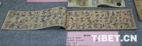 这些文字是不是更像是简笔画?东巴文是目前世界上还“活着”的象形文字之一,被誉为研究人类文字起源和发展的“活化石”。东巴文专门用来书写纳西族东巴典籍,由一代代东巴经师传抄流传,传世很多,内容广博。图为线装的清抄本东巴文古籍《烧天香》(复制本)