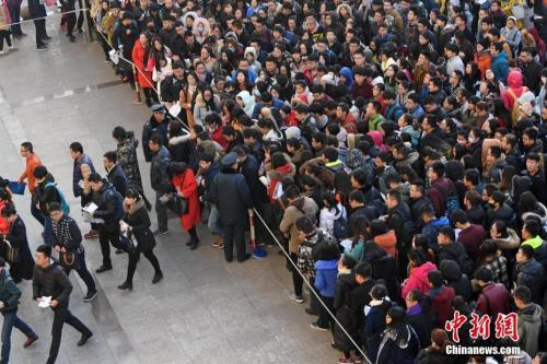 资料图:山西太原一公务员考点,考生排队准备进入考场。武俊杰 摄