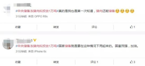 网友表示,才知道猪肉都有储备,太好了!
