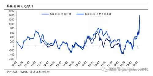 部分上市龙头养猪企业已逐渐补栏增产,如正邦科技的生产性生物资料增速2季度跌幅已经收窄,但我国生猪养殖市场分散,龙头企业补栏对整体的贡献有限。更广大的受损疫区也在尝试进行复养,但成效尚待观察。近期支持政策加码和养殖利润上涨,有助于提升养殖户补栏意愿。