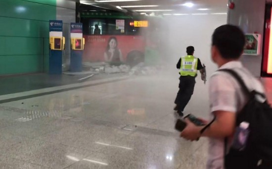 深圳北站公交站层,一辆公交车冲进大厅。受访者供图