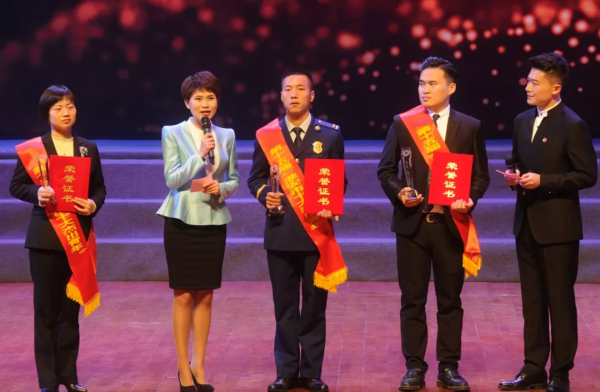 洪基恩(右二)获第十五届淮安市十大杰出青年表彰(记者:谭鑫/摄)