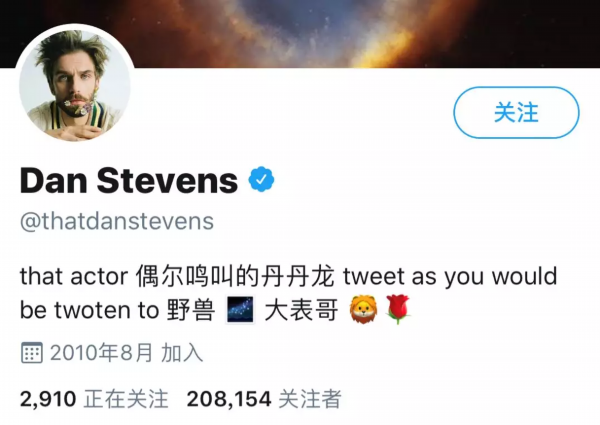 不信?来看看他在社交软件平台的自我介绍吧。不仅有中文的“大表哥”,还有,“偶尔鸣叫的丹丹龙”,这是什么鬼?