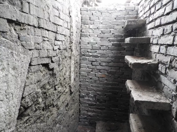 记者从文昌阁当时填埋的孔口深入到了地下。在现场记者看到,留着的入口孔门位于文昌阁的东南侧,入口洞口很小,只能容一人通过,在洞口的墙壁上,向下斜向间隔镶嵌着一块块混凝土块,组合成为一个深入地下的简易台阶。