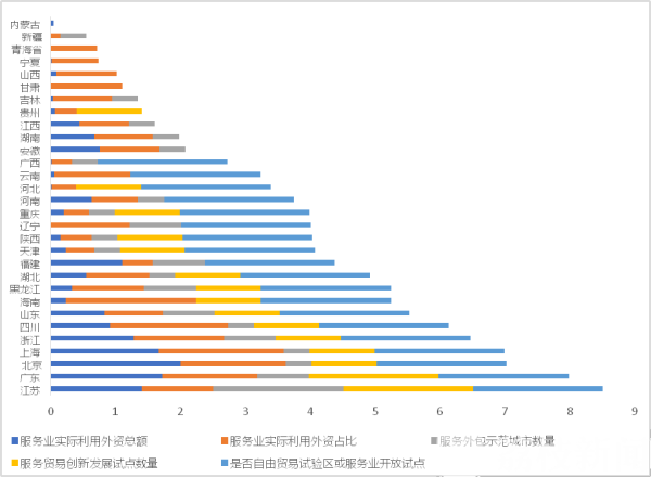 全国省级地区服务贸易结构指数