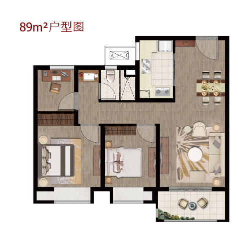 89㎡户型为3室2厅1卫设计,该户型三开间朝南,采光面充足,整室较为周正,南北通透;卫生间为干湿分离设计,方便后期打扫。面积虽小但也做到了三室,符合不少刚需家庭的需求。