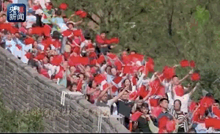 数百名游客在长城唱响《我的祖国》