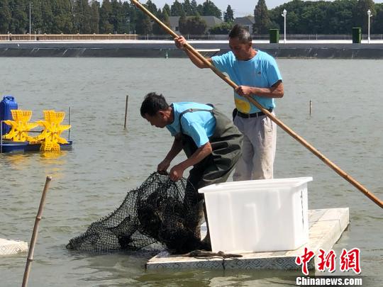 在位于南京高淳的固城湖,记者看到,这里水域宽广,碧波荡漾,水质清纯如镜,被蟹农们称作螃蟹的“水晶宫”。当天,这里举行了大闸蟹开捕仪式,蟹农们湖中捞蟹忙,工作人员熟练地将螃蟹包扎、打包、装车。