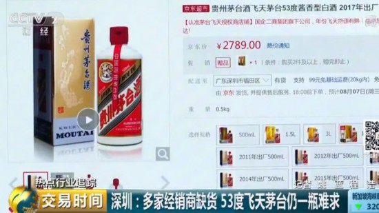 深圳某茅台经销商:2019年的没有了,都卖完了。2018年的要2300元,现在也只有两瓶了。