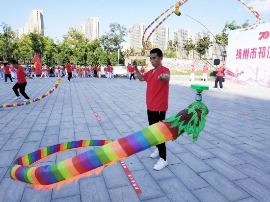 昨天上午,扬州市邗江区第七届空竹艺术节在邗江区揽月河休闲体育公园广场举行,来自扬州、泰州等地的320多名空竹爱好者齐聚一堂,共同交流空竹技艺。最终,泰州空竹协会、扬州市邗江区空竹协会等12个代表队获得了集体一等奖。