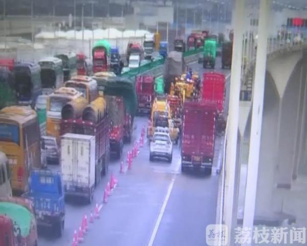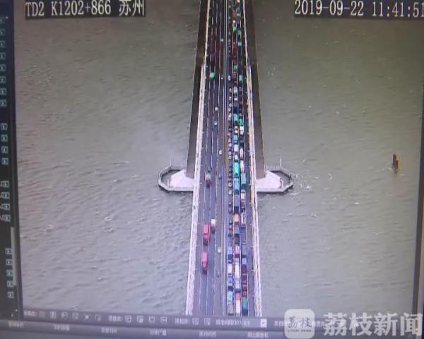 事故引发沈海高速苏通大桥段由北向南大面积拥堵。中午11点半左右,拥堵路段已超过20公里。