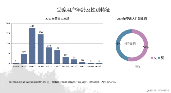 据百合佳缘集团此次发布的数据显示:今年1月到7月,世纪佳缘APP收到的1482例举报中,其中受害用户年龄在28-37岁的共808例,占比为54.5%。与公众印象不同的是,男性受害者也达46%。一改过往诈骗案中受害者以中老年、女性化为主的局面。