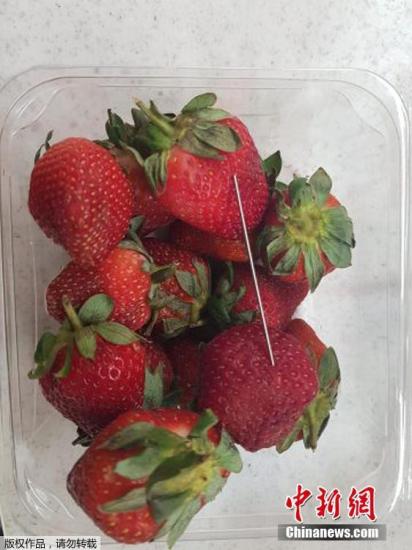 中新网9月23日电 据澳洲新快网报道,澳大利亚人2018年才经历过的“草莓藏针”事件,竟然又再次出现了。维多利亚州警方23日透露,近期,在墨尔本不同商店里购买的两盒草莓又发现被人插了针。