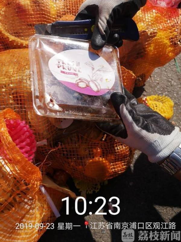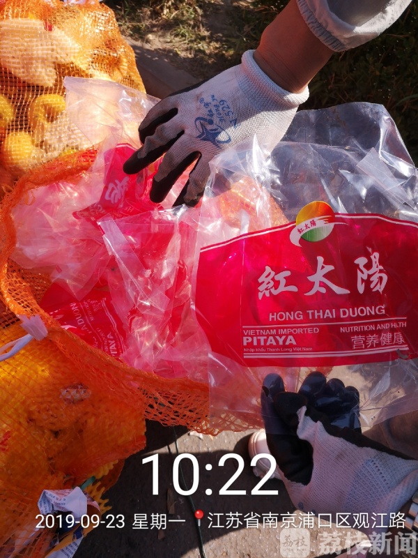 一时半会,大家并未找到印有品牌水果店的明显标识,也未能询问到更多有效线索,仅仅发现了腐败的进口西梅、椰子冻、红太阳火龙果袋等水果和果皮。