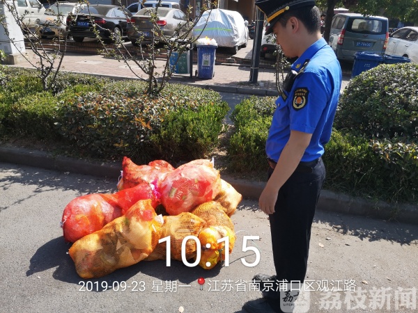 10袋果皮垃圾堆积路边,蝇虫横飞污染环境。南京新区城管联合环卫公司垃圾里扒线索,逐店调查,3小时走访15家水果店,成功将涉事老板带回执法大队接受处罚。