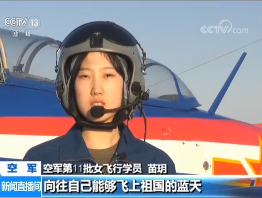 空军第11批女飞行学员 苗玥:从小我就向往飞行,向往自己能够飞上祖国的蓝天,今天,我在航空大学终于圆梦了。放飞梦想,翱翔蓝天,我要为祖国而飞,为人民而飞,做一名能打仗、打胜仗的女飞行员。