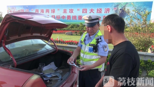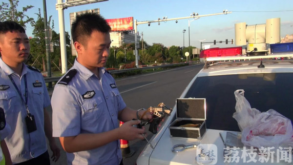 江苏大丰区公安局为保证国庆70周年的安保和道路安全畅通,昨天(9月23日)下午在沈海高速大丰收费站查获一辆轿车上有警用手铐、大功率飞镖发射器、菜刀等违禁管制刀具。