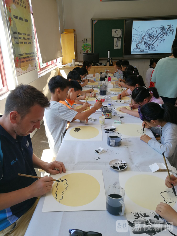 四(5)班的孩子们得到了这样一个特别的展示和体验的机会,纷纷表示:“真巧排到我们班上这节美术课,我们班真是太幸运太幸福太满足了!”课后,同学们将竹简作为礼物送给来自澳大利亚的老师们,两位来自澳大利亚的老师对中国画的水墨变化、孩子们的中国画基础、叶老师的双语教学、学校的文化底蕴留下了深刻的印象。