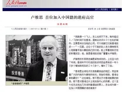 这位大叔名叫卢维思(Mike Rowse),曾是香港回归以来首位加入中国籍的港府高官,现已退休。