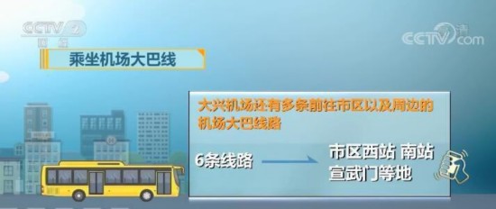 方法三:乘坐机场大巴线。大兴机场还有多条前往市区以及周边的机场大巴线路,6条线路通达市区西站、南站、宣武门等,分别为大兴计划开通兴航1线(大兴机场-北京站)、兴航2线(大兴机场-北京西站)、兴航3线(大兴机场-北京南站)、兴航4线(大兴机场-通州)、兴航5线(大兴机场-房山)、兴航6线(大兴机场-宣武门夜航线)。
