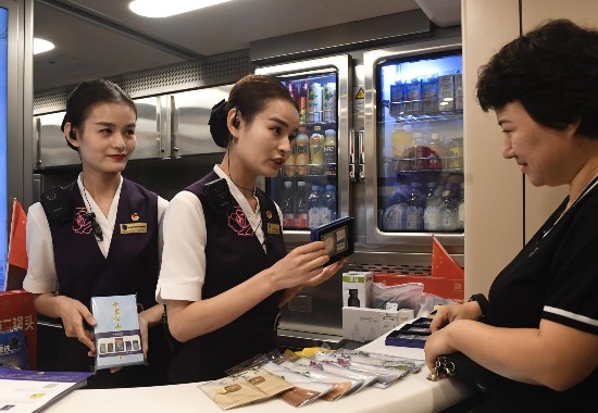 此外,记者还观察到,在列车的5号车厢中设置了餐车吧台。北京铁路局京铁列服公司市场开发部部长田俊艳告诉记者,这里主要售卖饮料、休闲食品、快餐和北京冬奥特许商品。