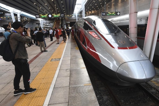 北京大学大二学生王浩然表示,自己和10多个同学今天专门来体验首发列车。“从进站开始,就觉得乘车特别方便。列车内部座位变成了四个,空间大了很多,比较舒适。”