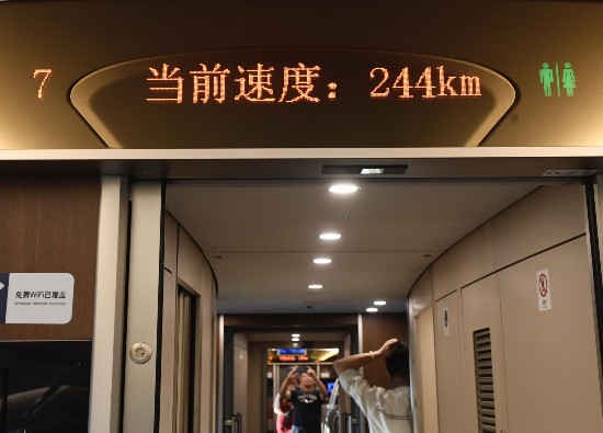 C2701次列车最高时速达到244公里。摄影/新京报记者 吴宁