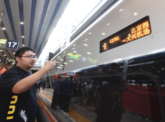 来自雄安新区的市民刘江峰先生告诉新京报记者,其昨日特意从雄安新区坐车到北京,只为今天体验一趟从北京西站通往大兴机场的列车。