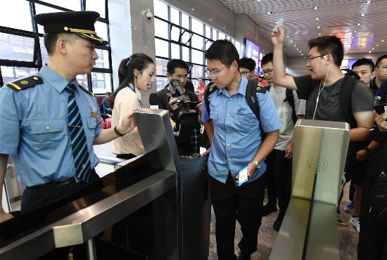 电子票方便快捷,刷手机即可进站。摄影/新京报记者 吴宁