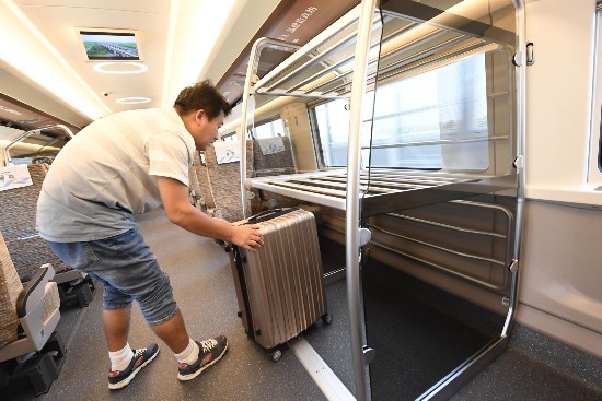 “全车共安装了27个行李架,能放下189个28寸的行李箱。”吴强介绍,大部分行李架位于车厢中部,车厢内座位朝向行李架也是为了让乘客能“随时看到自己的行李”。