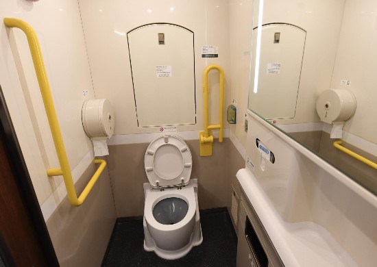 在列车的4号车厢设有无障碍卫生间。摄影/新京报记者 吴宁