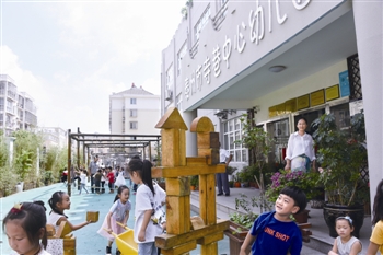 寺巷中心幼儿园的孩子正进行自主游戏。