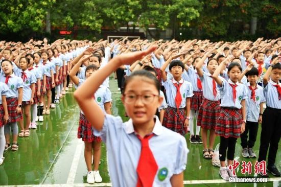 资料图:开学典礼上,学生们向国旗敬礼。 中新社记者 翟羽佳 摄