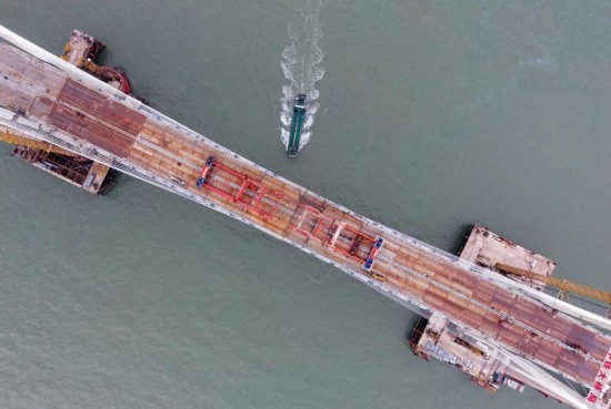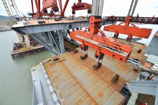 位于福建的平潭海峡公铁大桥全桥合龙贯通