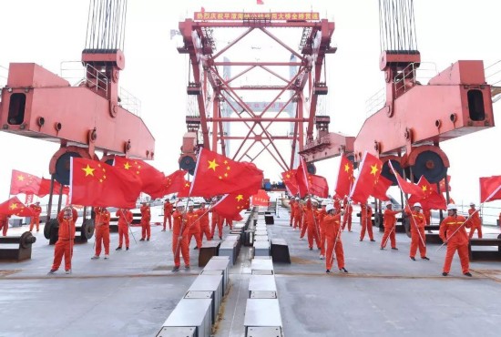 9月25日,中国铁路南昌局集团有限公司职工参加平潭海峡公铁大桥合龙贯通庆典仪式。新华社记者 林善传 摄