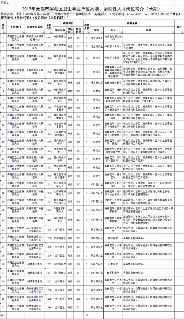 (1)《2019年无锡市滨湖区卫生事业单位公开招聘报名表(高端、紧缺)》(附件2)1份;