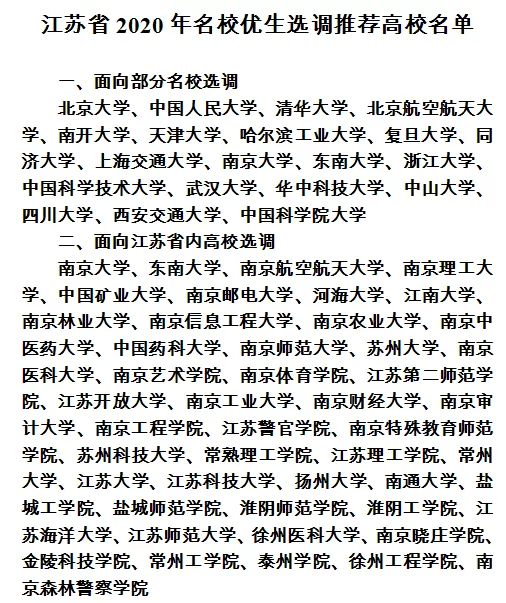 为加大优秀人才引进力度,优化选调生队伍结构,根据选调生工作有关规定,现就江苏省2020年名校优生选调工作公告如下。