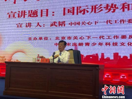 中新网北京9月26日电 (记者 刘旭)“首都关心下一代大讲堂”第七讲25日下午在中国宋庆龄青少年科技文化交流中心开讲。中国关心下一代工作委员会常务副主任武韬以“国际形势和外交关系”为题作报告。该活动由北京市关工委和中国宋庆龄青少年科技文化交流中心共同举办。